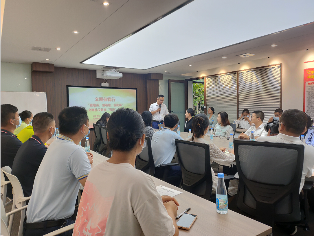 为深入贯彻三亚市委市政府“我为群众办实事”部署,落实“查堵点、破难题、促开展”行动,强化文明意识和素质,营造讲文明、懂礼貌、遵公德、守法纪的氛围,进一步推进创建全国文明城市工作,市委精神文明爱卫办联合旅文集团于10月11日下午在集团办公区第一会议室召开文明礼仪教育“五进”活动。