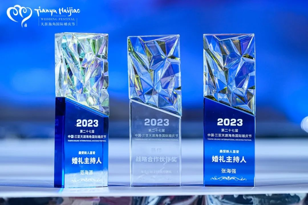 闭幕式上颁发了“2023最受新人喜爱的婚纱摄影公司”“最受新人喜爱婚礼公司”“2023年三亚最受新人喜爱的婚礼酒店”“2023三亚目的地婚礼年度营收十强酒店”“2023最受新人喜爱的酒店金牌婚典经理”“有助于海南婚庆旅游行业开展奖”“2023年度全国有助于目的地婚礼行业贡献奖”等9个婚庆行业业界奖项以及天涯海角婚庆节最佳战略合作伙伴奖。