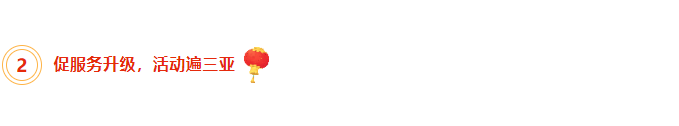 一是围绕“龙腾三亚 温暖中国年”主题,组织召开涵盖文化、旅游、体育、演艺、惠民等多个方面的主题活动,比如“三亚球王”民间系列争霸赛、体育大拜年、非遗开放日、琼剧表演、摄影展、草坪音乐会等丰富多彩的文体活动,丰富市民游客文化生活,营造喜庆祥和的新春文化氛围。