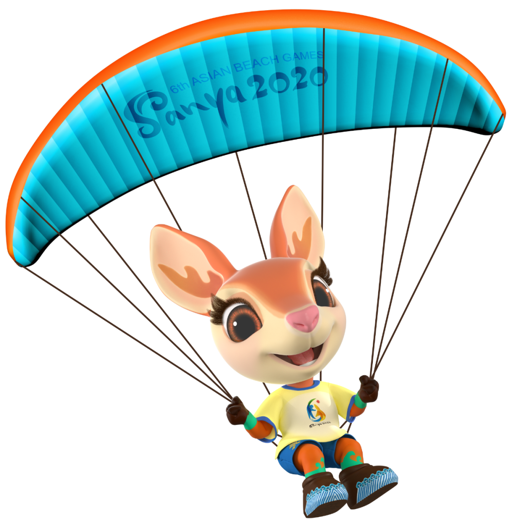 在吉祥物运动项目造型中,“亚亚”时而全神贯注、英姿飒爽,时而悠然自得、神采飞扬,用灵动的双眸、热情的笑脸、充满活力的运动姿态,表达“亚亚”热爱沙滩与水上运动、努力争夺荣誉的态度。