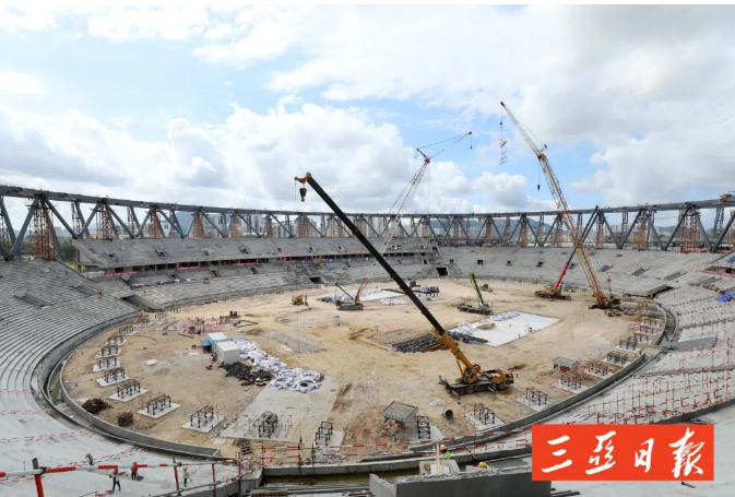 “钢结构施工的顺利进行和工期节点如期完工,为后续索结构、屋面膜结构进场施工给予有利条件。”三亚国际体育产业园体育场项目经理王洋介绍说,索结构预计7月25日完工,屋面膜结构、幕墙结构预计9月15日完工。现在,体育场项目已完成整体施工量的70%。