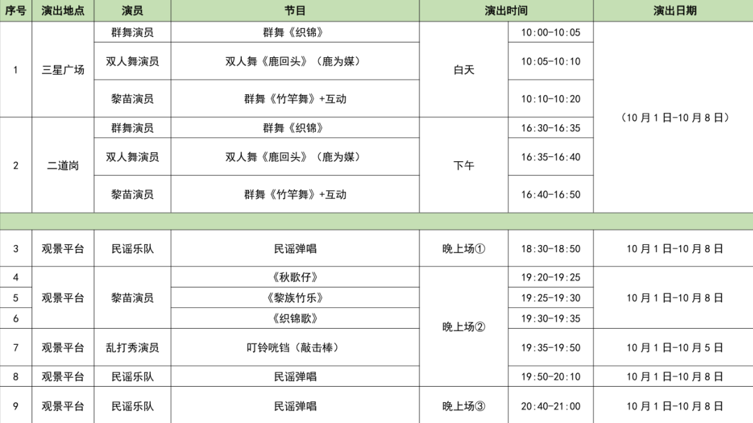黄金周期间鹿回头演出时刻表