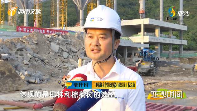 整个建筑风格体现了热带海岛风情,观众看台的钢结构罩棚,体现的是椰林和棕榈树的造型,建成之后,可以展现我们三亚独特的热带风貌,现在开幕式场馆建设,进入到最后冲刺阶段,现在主要在进行观众看台的钢结构罩棚和舞台钢结构圆环的安装,整体工程应该是在明年的一月底全部交付。