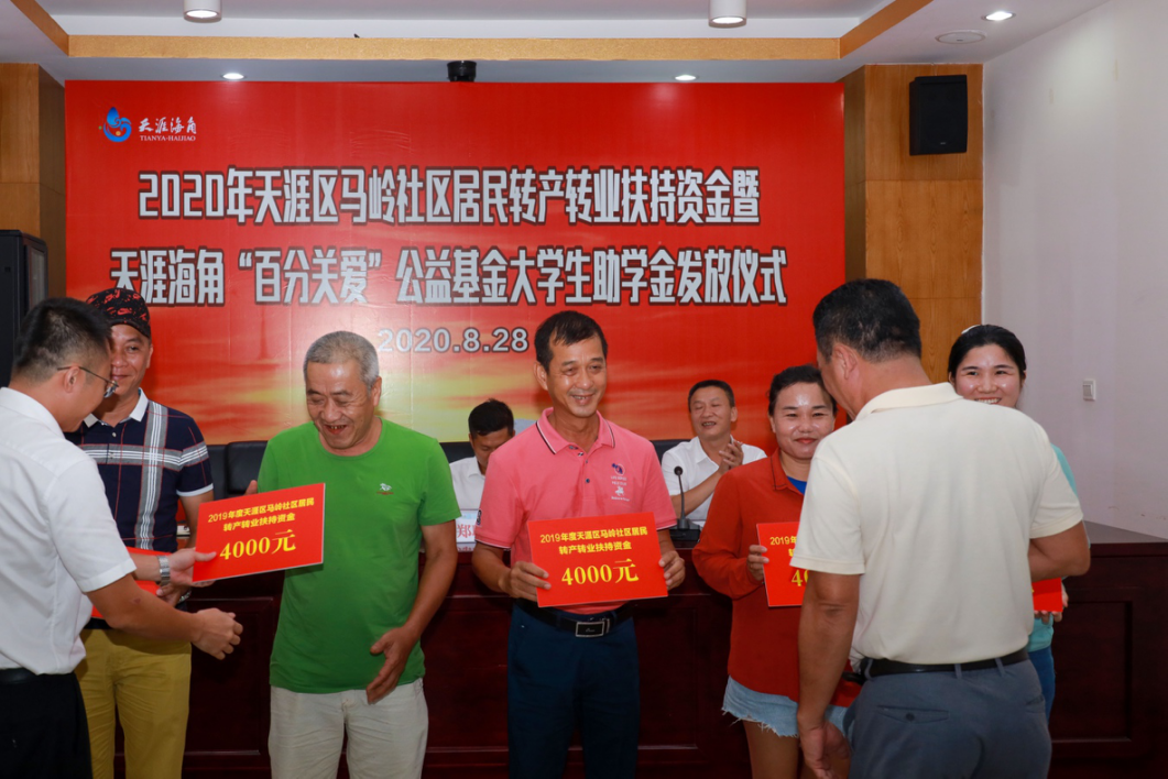 为保障周边社区居民民生利益,天涯海角公司每年在助学、扶弱、帮困等多方面给予了充足资金,充分给予马岭社区居民物质与精神上的帮助,组织丰富多彩的社区活动构建和谐社区,使整个马岭社区的经济、文化生活大为改善。